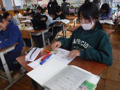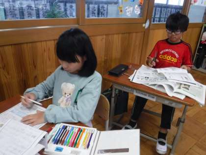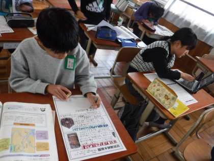 疏水新聞を作り始めています。学習した中で、興味をもったことやもっと調べたいことを新聞にまとめています。見出しも工夫しており、見やすい新聞が出来上がりそうです。