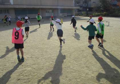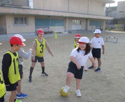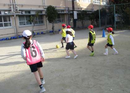 今日の体育のボールけり遊びでは、1組対2組で試合をしました。