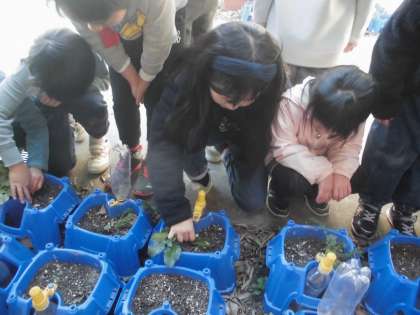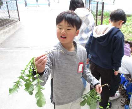 生活科で育てていた大根を収穫しました。