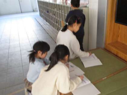 算数科の学習で、身の回りのものの長さを、予想してから測りました。