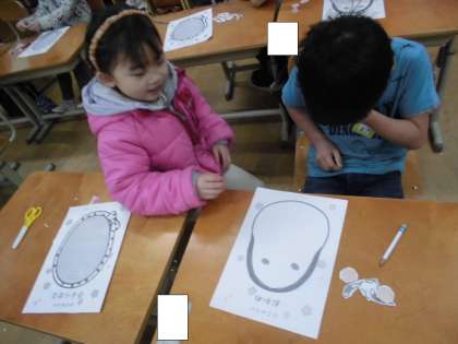 生活「ふゆとともだち」で、冬の正月遊びとして「福笑い」をしました。