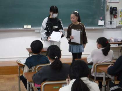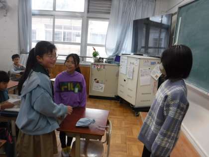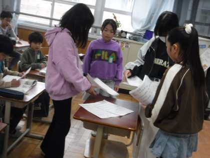 先週は、給食週間でした。給食委員会の人たちが企画してくれた給食クイズに、楽しんで答えていました。その結果を給食委員の人たち伝えに来てくれました。クイズに全問正解した人にはおかわり券がもらえ、残飯が一度もなかったので、メダルももらいました。これからも、おいしくいただけることを感謝していきたいです。