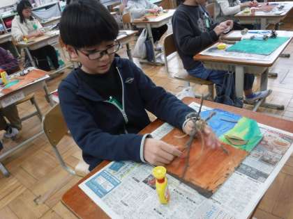 色塗りの後は、小物を作り始めました。ブランコやハンモックを作ったり、家の骨組みを作ったりしていました。素敵なすみかが作れたらいいなあと思います。