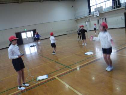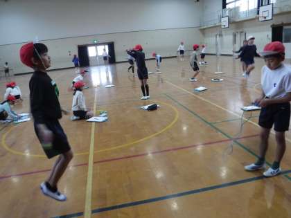 なわとび練習に励んでいます。しっかりリズムを取りながら、なわを回しています。今日は、1分間に何回跳べるか、チャレンジしました。二重跳びや綾跳びにも、どんどんチャレンジしています。