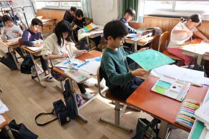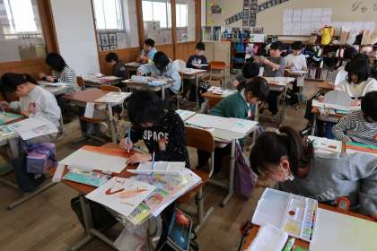 3年生の図画工作科「くるくるわりピンワールド」の学習の様子です。