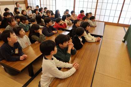 今日の昼チャレンジの時間に、図書ボランティア「たいよう」の方の読み聞かせを聞きました。