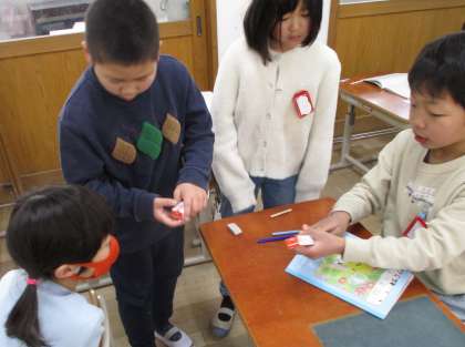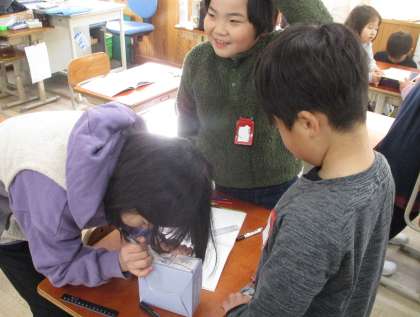 「同じ形の面が、2つずつあるね」と言いながら調べていました。