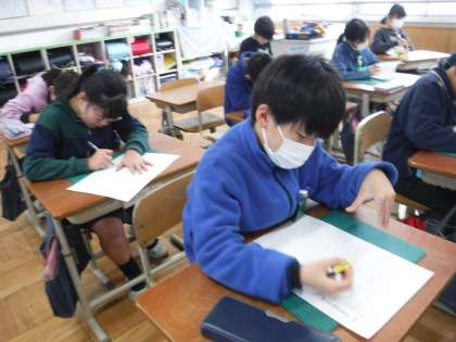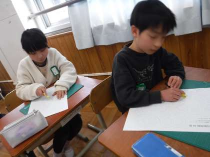 もうすぐ卒業する6年生のために、お祝いの掲示物を作りました。カッターで、たくさんの花を型抜きました。細かい作業になりましたが、すてきな花がたくさんできました。