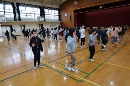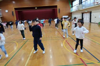 今日は、6年生を送る会にむけて学年で練習をしました。