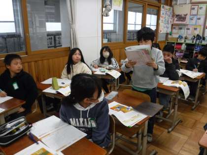 今日の道徳科では、「三つのつつみ」というお話から、思いやりについて考えました。疲れているにも関わらず、主人公が見知らぬ人のために米・塩・マッチなどをそれぞれの包みに入れていたことから、知らない人にも自分ができることをする思いやりのすばらしさに気付くことができました。「友達には思いやりをもって行動したことはあるけれど、知らない人のためにと考えたことがなかった。」と、たくさん感想が出ました。