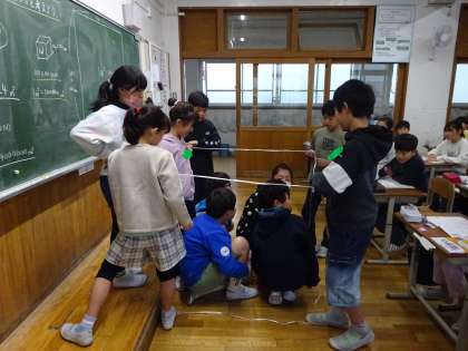 体積の学習で1㎥は実際にどれくらいの大きさになるのかを確認しました。思っている以上に大きかったようです。
