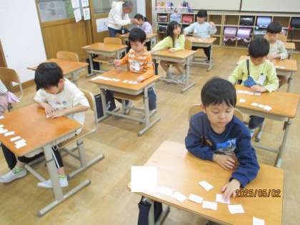 1から10の数を数えたり、数カードを引いて大きさ比べをしたりして楽しみました。ペアの友達と仲良く取り組むことができました。