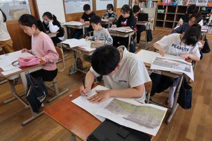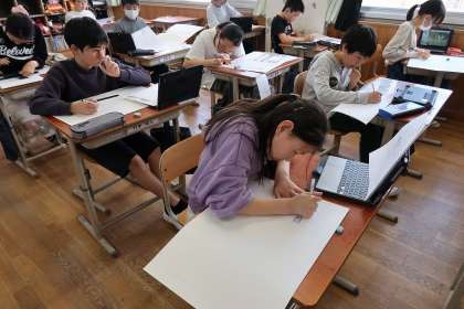 6年生の図画工作科「わたしの大切な風景」の学習では、子どもたちが6年間のなかで思い出に残っている場所を選んで、作品づくりをしています。