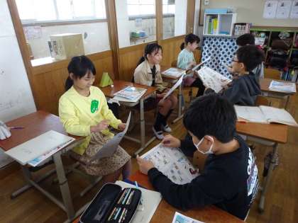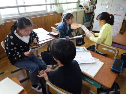 教科の言い方を練習するために、ペアで問題を出し合いました。繰り返し発音していくと覚えられてきています。