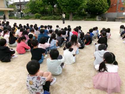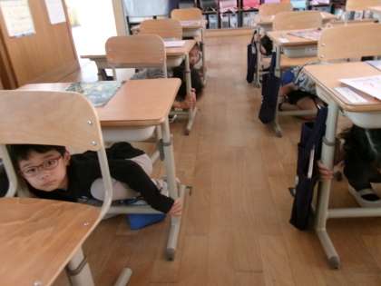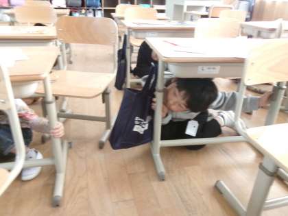 避難訓練がありました。今日は、地震が起こったことを想定しての訓練です。自分の身を守るために大切なことを真剣に聞いていました。その後の訓練もしっかり避難することができました。