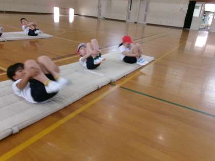 マット運動の準備運動は、曲がかかると自分たちで進められるようになりました。