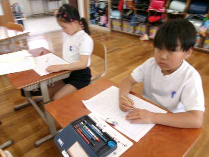 物語の読み取りでは、気持ちをあらわす言葉や、様子を表す言葉がたくさん出てくることがわかりました。今度は自分たちでお話の続きを考えました。