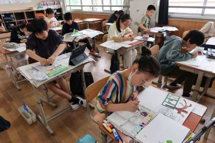 授業では、6年間の中で自分が思い出に残っている場所の絵をかいています。
