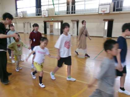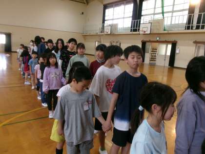手を繋いで入退場をするときに、優しく話しかけたり、場所を教えたりしていました。