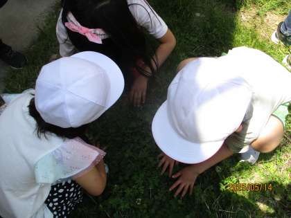 四葉のクローバーやヘビイチゴなどを見つけ、とても喜んでいました。
