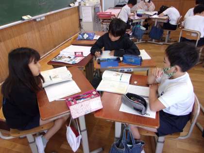習い事のことや委員会のことなど、インタビューする話題を話し合いながら決めていました。