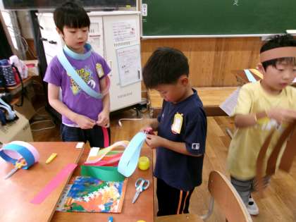 「何にしようかな」と言いながら、真剣にわっかを作っていました。