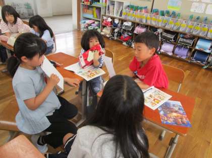 習った漢字や言葉を使って、動物園の様子を表す文を考えました。考えた分を班の人と交流しました。