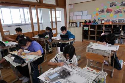 色づくりや水の量を調節しながら、自分が表現したい色で作品づくりをしました。