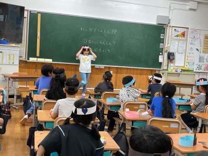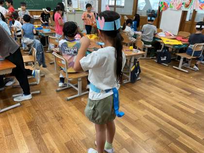 図工科の学習で、「わっかでへんしん」をしました。