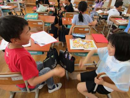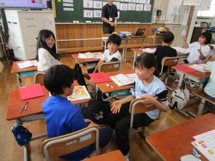 外国語の学習で、数を英語で数えたり、英語のじゃんけんをしたりして楽しく学習しました。