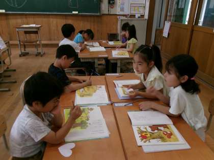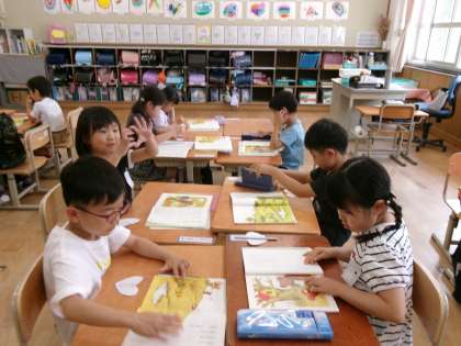 国語科「はなのみち」の学習で、音読会を開くことになりました。今日は、どこを音読するかをグループで話し合いました。「口をはっきり開けて、音読したいな。」と、やる気満々です。