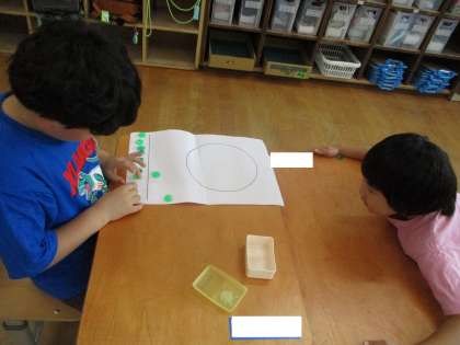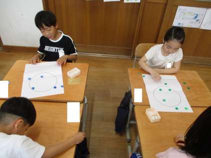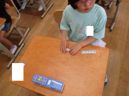おはじき入れゲームや、数図ブロックを使って考えることができました。