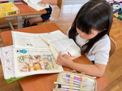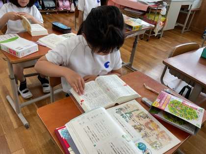 国語辞典の使い方を学習し、実際に色々な言葉を調べてみました。「先生、これってこういう意味なんだって!」など嬉しそうに教えてくれました。
