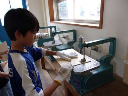 電動糸のこぎりを使って木版を切りました。初めて使う人ばかりで、最初は緊張した様子でした。慣れてくると、楽しく切れたようです。、