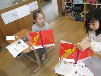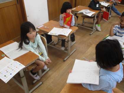 「ぱんだ」「かば」「がっかつ」など、いろいろな言葉を集めてノートに書き、友達に紹介することができました。