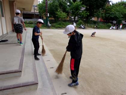 5年生は、体育館周辺の清掃や、校舎前の草抜きなどを担当しました。