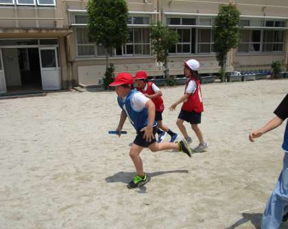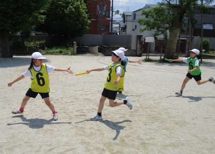 4回目のリレーの学習を行いました。バトンパスもどんどん上手になってきて、各レースで接戦が繰り広げられています。