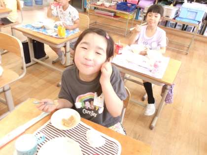 今日の給食に、ういろうがでました。黒糖の甘さともちもち感が、大人気!初めて食べた子も多く、みんな嬉しそうに食べていました。