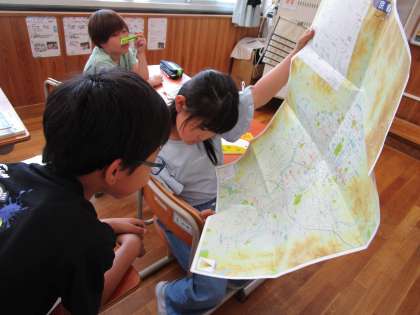 これまで学習してきた京都市の様子のほかに調べたい場所はないか地図を見て考えました。