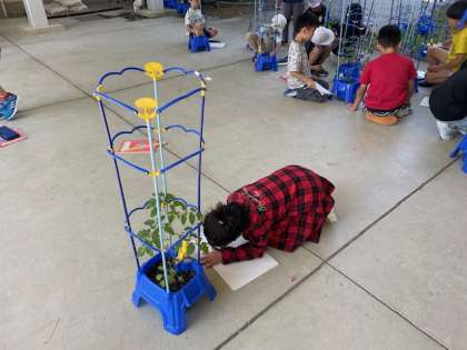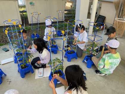 国語科の学習でミニトマトを観察して