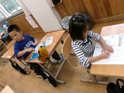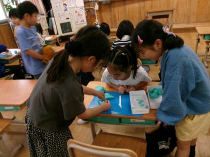 今日は、久しぶりの大雨。休み時間は、教室で過ごしました。逆立ちごまで遊ぶ子、粘土遊びをする子、読書を楽しむ子。飴の日でも、楽しくそれぞれに休み時間を過ごしていました。