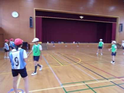 体育館でベースボールをしました。