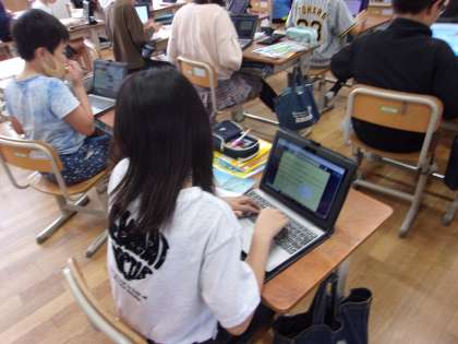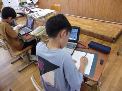 教科書やタブレットを使い、一生懸命取り組んでいました。