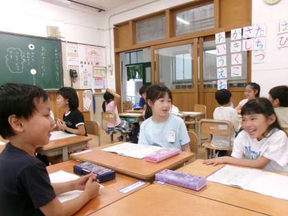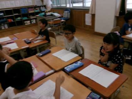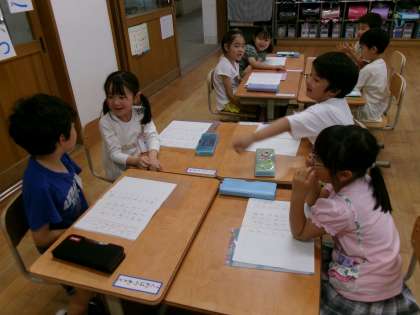 平仮名の学習が、終わりに近づき、たくさんの文字を書けるようになってきました。今日は、ひらがな表を見て文字の並び方を確認したり、しりとりをしながら言葉遊びをしたりしました。たくさんの言葉が出て、楽しそうでした。