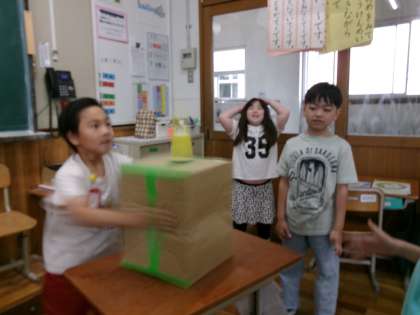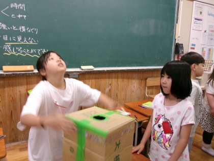 風の働きを使ったおもちゃで遊びました。