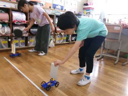 うちわで車を仰いだ時は、仰ぐ強さを変えることで調節することで進む距離をかえられることに気づいていました。
