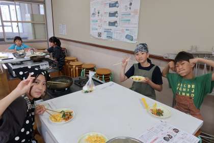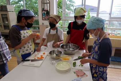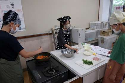 どのグループも、野菜の切り方や炒め方など、協力して作ることができました。