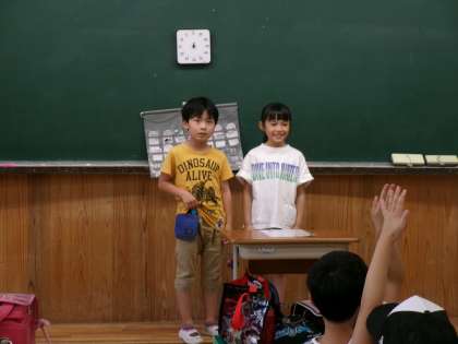 日直の仕事が始まりました。朝の会や帰りの会の司会や授業のあいさつなど、はりきってこなしてくれています。少しずつ仕事が増えていくので、みんなで協力しながらやっていきたいとおもいます。