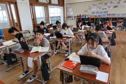 授業では、デジタル機器の使い方についての提案文を書きました。