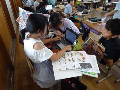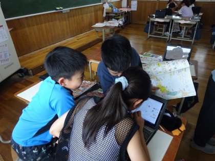 普段食べているものは、どこで作られているのか産地調べをしました。チラシを見ながら、班で記録をして、気付いたこと等を交流しました。